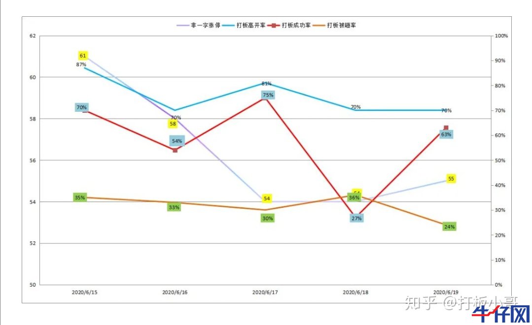 漲停復盤模板,個人也可以統計和制作,這里增加了《短線打板氛圍》的指標,包括:非一字漲停;打板被砸率;打板成功率;打板高開率。如下圖: