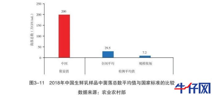 數據顯示,2018年全國生鮮乳菌落總數的監測數據平均值是29.5萬CFU/毫升,大大低于國標200萬CFU/毫升的標準。