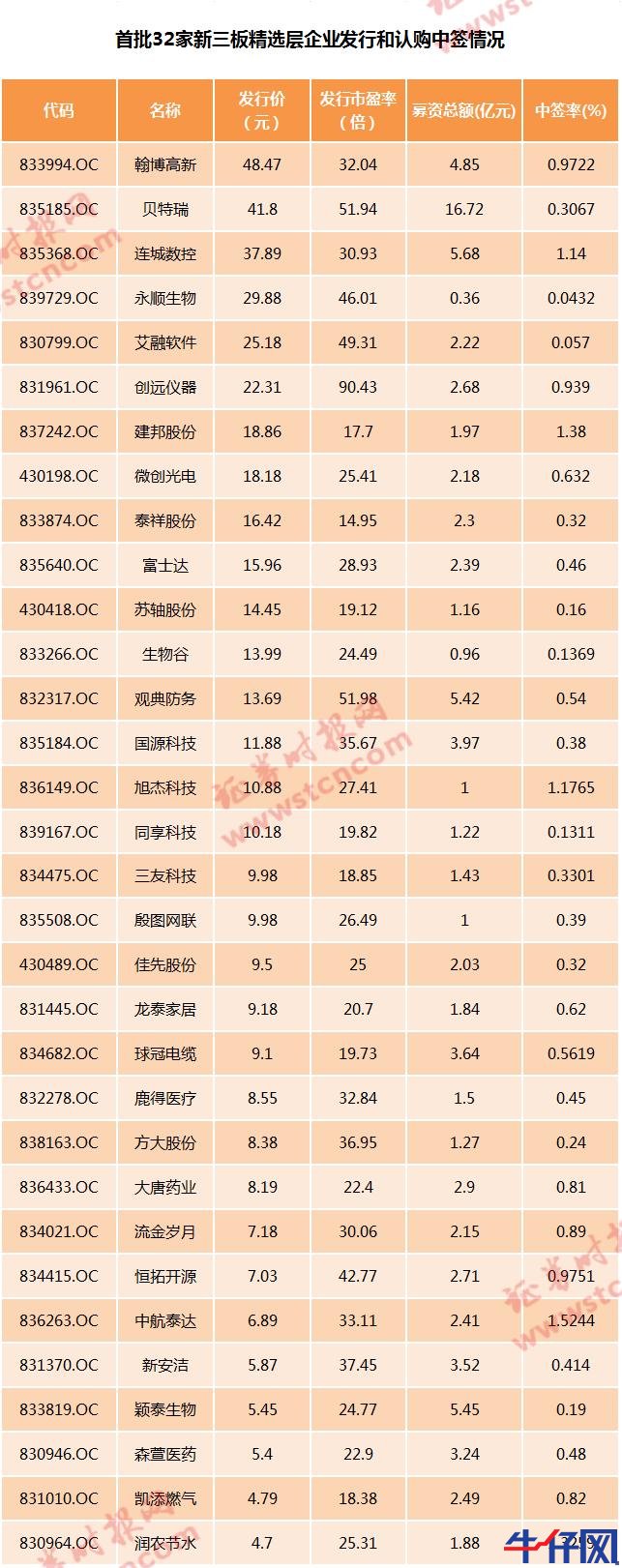 新三板精選層首批企業下周一上市 合計募資94.52億