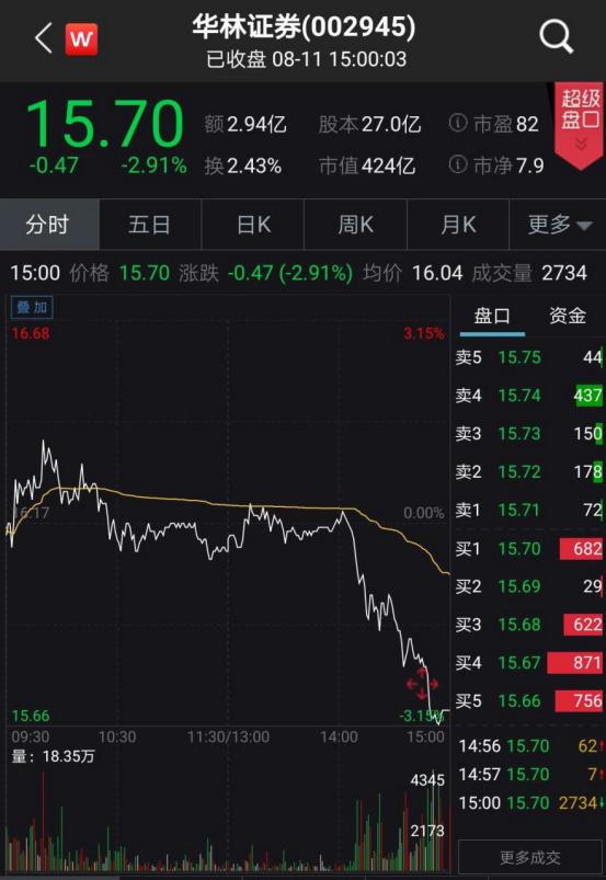 8月11日,華林證券下跌2.91%,報(bào)15.70元/股。