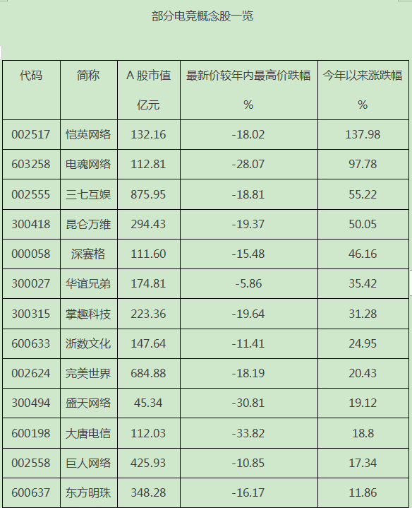 證券時報·數據寶統計,電競板塊17只個股的A股市值合計4098.48億元。