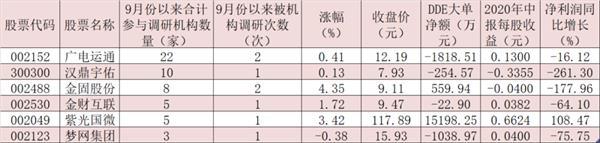 表:9月份以來獲得機構調研的數字貨幣概念股