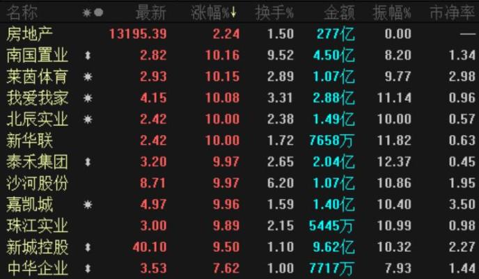 在南國置業(yè)(行情002305,診股)預(yù)告2020年度業(yè)績扭虧之后,股價連續(xù)5個漲停,徹底引燃了沉寂許久的房地產(chǎn)股做多熱情。周二房地產(chǎn)板塊指數(shù)逆市放量大漲2.24%,我愛我家(行情000560,診股)、中房股份(行情600890,診股)、北辰實業(yè)(行情601588,診股)、沙河股份(行情000014,診股)等漲停。港股房地產(chǎn)板塊周二也大幅拉升,恒生地產(chǎn)指數(shù)漲4.12%,其中細分的恒生內(nèi)地地產(chǎn)指數(shù)一度暴漲近9%,中國恒大飆升15.68%,綠城中國、合景泰富集團、華潤置地等均大幅拉升超10%。