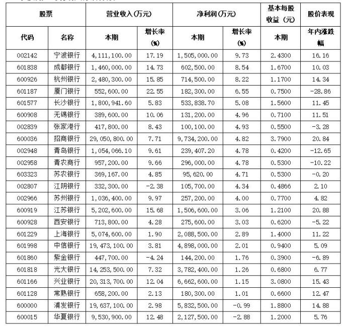 23家披露業績快報的銀行股