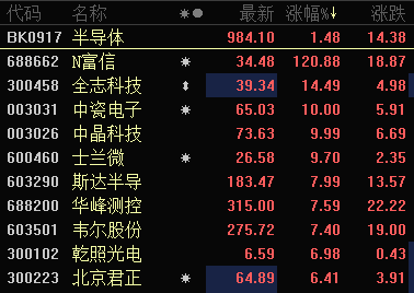 金融界網4月1日消息,半導體板塊漲勢強勁,細分領域汽車芯片概念漲幅居前,全志科技(行情300458,診股)、韋爾股份(行情603501,診股)、銀河微電(行情688689,診股)、新潔能(行情605111,診股)、立昂微(行情605358,診股)等多股大幅拉升。